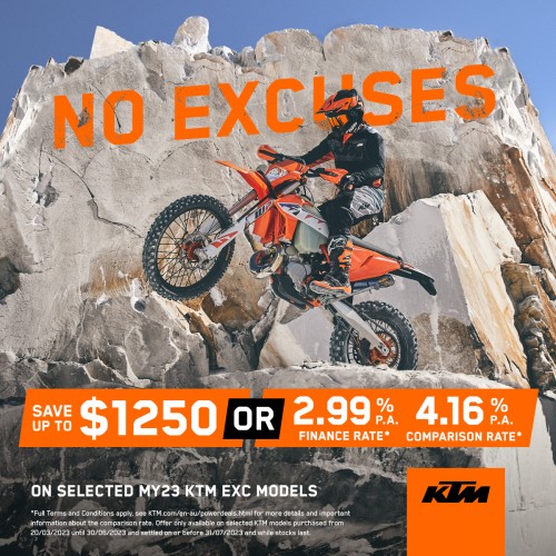 Today, KTM announced a new finance campaign, where you, the buyer, chose (subject to approval) either the low rate OR the rebated price.